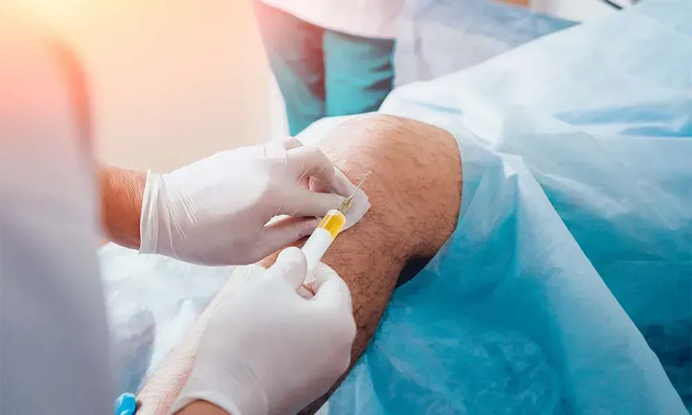 Platelet-rich plasma (PRP) therapy for the knee involves injecting a concentration of the patient's own platelets directly into the knee joint to promote the natural healing of injured tendons, ligaments, muscles, and joints.